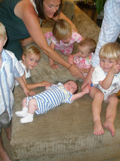 He is growing so fast! He's going to be taller than both of you by 5. :) He looks soooo long. And the hair??? It doesn't look like any of it has fallen out. Is it getting more red as time passes? It looks like it. I can't wait to meet him and see yall.