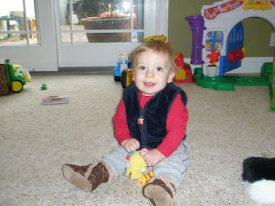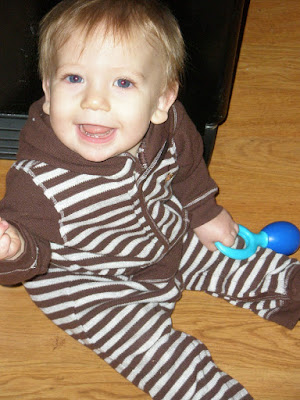 I started music class last Fall. This is our class photo taken before Christmas. My teacher "Miss Lindsay" is the best - she's the one sitting in the middle. She lets my chew on all of the instruments!