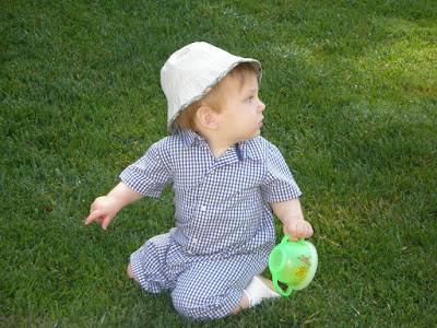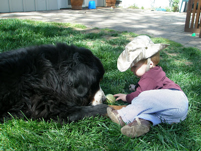 While Mom changes my diaper, I watch Ralph in the yard.
