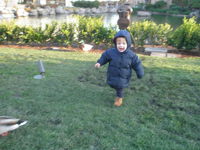 All bundled up to chase the ducks...